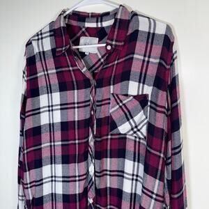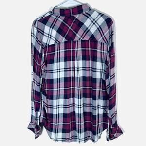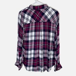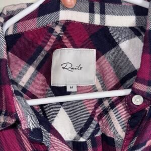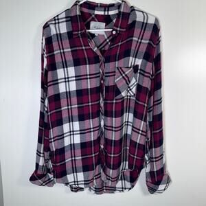Rails Hunter Plaid Shirt Women’s Medium Rayon Button Down Navy/Burgundy Flannel