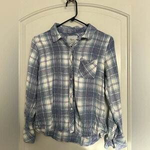 Rails Hunter Plaid White Blue Red Shirt Flannel Button Down size small