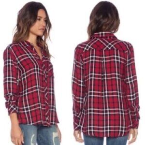 Rails Hunter Red Blue Plaid Button Down Flannel Blouse Size Small