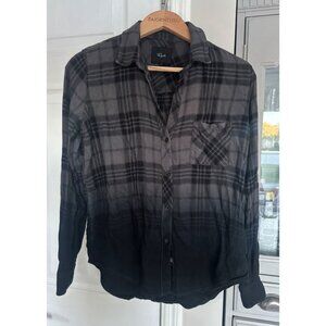 Rails Hunter Small Shirt CHARCOAL JET DIP DYE Top Long Sleeves Rayon