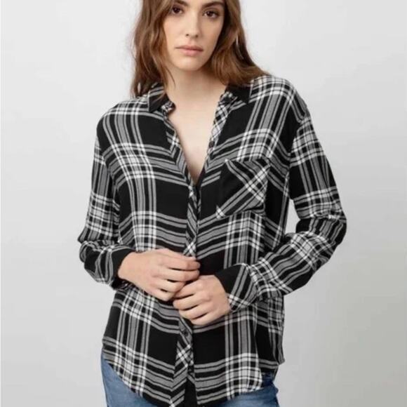 Rails Hunter Soft Black and White Flannel Button Down Shirt Size M