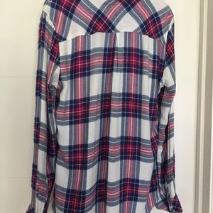 The Hunter White Rose blouse by Rails is such a sweet button down that is perfect for any season. The colors of white, rose and navy come together to make a beautiful plaid for the holidays. There is a pocket on the front left side and the lightweight material makes it perfect to wear on it's own in hotter weather as well as layer it in the cold. Made of 100% rayon. Hand wash in cold water and hang to dry. Shirt is in perfect condition! No stains or flaws.