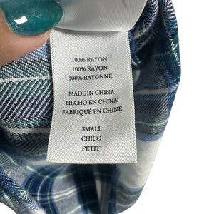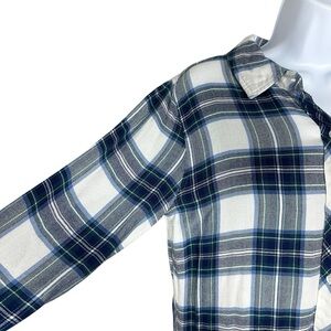 Rails Hunter Women’s Plaid Rayon Button-Down Shirt Soft Blue White Size Small