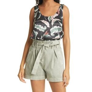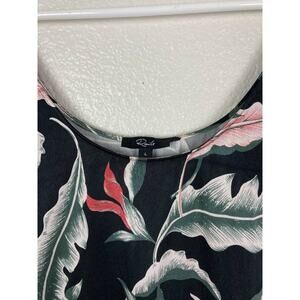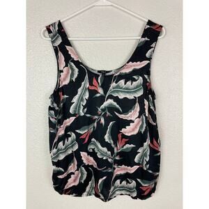 Rails Ida Paradiso Tank Large – Black Floral Leaf Print Satin Scoop Neck Top