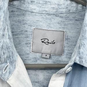 Rails Top Womens Small Blue White Ingrid Raw Light Vintage Patchwork Tencel Shirt