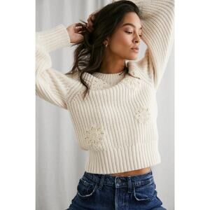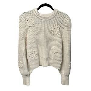 Rails Ivory Crochet Daisies Romy Knit Pullover Crewneck Sweater Womens Medium