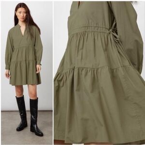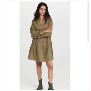 Rails Ivy Dress Medium moss green olive army long sleeve mini tiered ruffle XS
