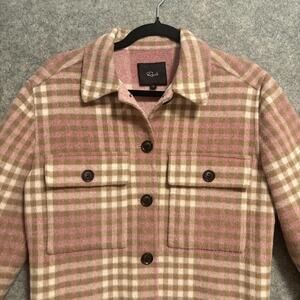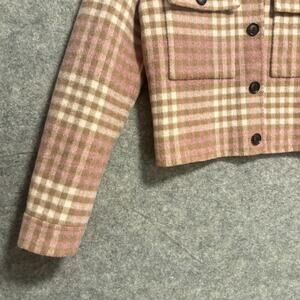 Rails Jacket Women Small Pink Plaid Cropped Button Wool Collared Shacket Pockets