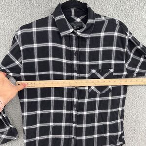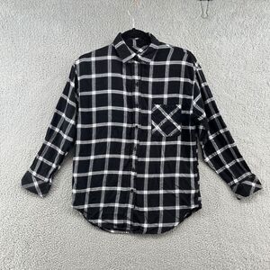 Snuggle up in the super comfy Jackson White and Ink button down by Rails. This plaid top is made of a blend of polyester and cotton which makes such a warm and soft blouse to wear. The plaid consists of a black background with plaid stripes of white and ink. The darker color scheme makes it perfect to pair with denim. Made of 60% rayon and 40% cotton.