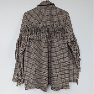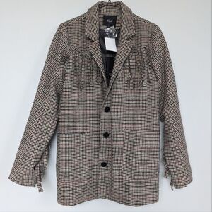 Rails Jagger Houndstooth Plaid Button Front Blazer, Pockets, Fringe Detail sz M