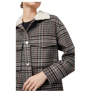 Rails Jaro Long Coat Womens Medium Onyx Taupe Plaid Wool Blend Oversized