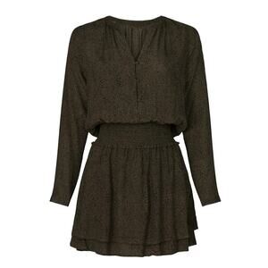 Rails Jasmine Dress Animal Print Long Sleeve Blouson Mini Olive Speckled Small