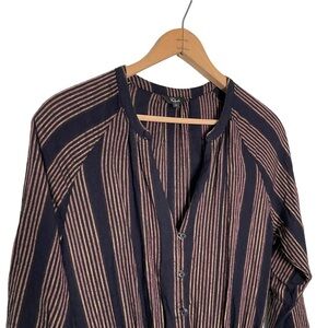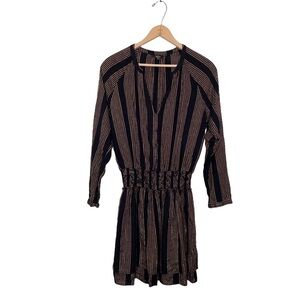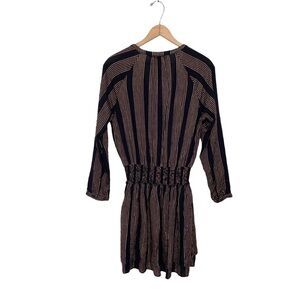 Excellent condition! Rails is know for incredibly soft plaid shirts, and is a celebrity favorite. This dress is super soft! Lightweight, luxe rayon, long sleeve V-neck little black dress featuring gold metallic Lurex threaded stripes, smocked waistline, and double layered tiered skirt. A pullover style body with elastic waistline and flowy skirt makes for easy wearability with feminine appeal.