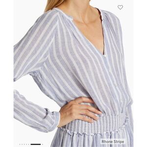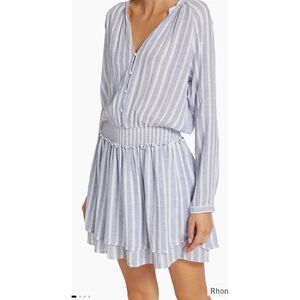 Rails Jasmine Linen-Blend Minidress in Chambrey & White Stripes NWT Size Large