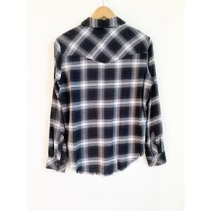 Rails Jaxton Coal Gray Snap Flannel XS Black white button up top shirt