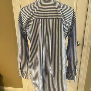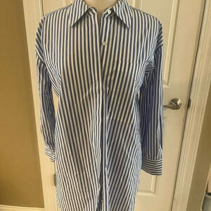 This is brand new, not worn, excellent condition shirt. This is a long casual dress shirt and can be dressed up with jeans or worn as a dress with a belt. product details are in the pictures. This is an excellent fun and well made brand. All of my items come from a smoke free home and are well cared for. This shirt retails for 228.00. Considerate offers are welcome. Thanks for stopping by!
