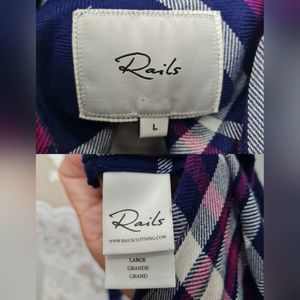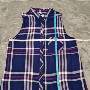 Rails Jordyn Button Down Sleeveless Long Line Top Shirt Color Navy/ White/ Orc Women's Size L Collar Sleeveless Chest pocket Button down Stylish both sides vent High-low shirt tail hem line Super soft 100% Rayon Hand Wash Cold Approximate measurement flat lay pit to pit 19.5" length 41" front, 47" back Very good condition, pre-owned No rip or tear Tag: versatile plaid long line plaid summer falls western cowgirl beachy boho vacation trip farmer farm country comfy breezy stylish