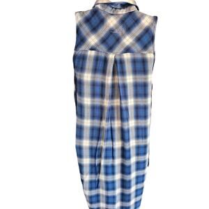 Rails Jordyn Tunic Top Open Sides blue teal plaid Check XS EUC button front