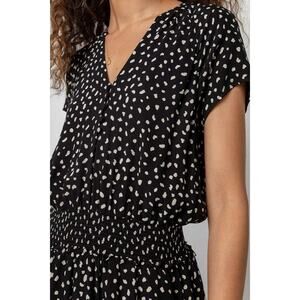 Rails Karla Mini Dress in Black Ivory Spots, Size XS, Black with Off White Ivory Cream Abstract Polka Dot Print, Short Sleeve, V-Neck, Smocked Waist, A-Line Silhouette, Blouson Bodice, Mini Length, Lightweight Material, In like new condition with no flaws or signs of wear.