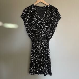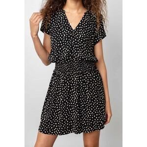 Rails Karla Dress Black Ivory Spots Mini Sz XS Smocked Chic Sexy LBD Fun Flirty