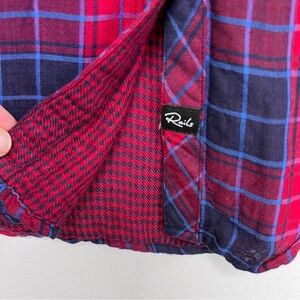 Rails Kendra Plaid Tartan Gauzy 2ply Flannel Button Up Shirt. Inside has a houndstooth like gingham print. Bright red magenta and blue. In excellent condition. Soooo cozy! Size XS.