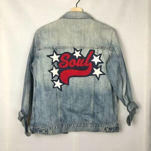Rails Knox Light Wash Distressed Denim Jacket Soul Embroidered S