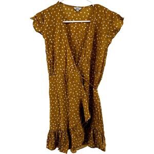 Rails Koreen Wrap Mini Dress Polka Dots Ruffle Flutter Sleeve V Neck Marigold S