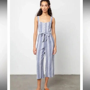 Rails Kyra Linen Rayon Blue White Striped Jumpsuit Sz: Small
