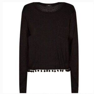 Rails Lara Black Pom Pom Linen Long Sleeve Top