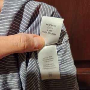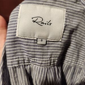 RAILS Layla Tunic Top. In Slate White Pinstripe. Button down. Collared. Tunic length. High Low hem.