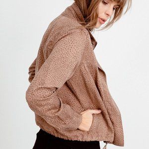 Lightweight lyocell/linen blend jacket in a muted leopard print.