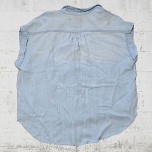 Rails Light Chambray Rolled Cuff Button Down Classic Short Sleeve Top Size Small
