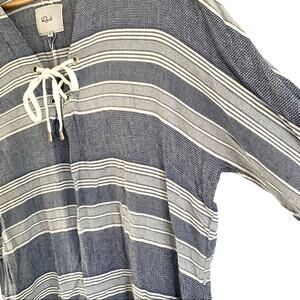 Rails Lily Lace Up Front Long Sleeve Top Blouse Athens Stripe Blue White Medium