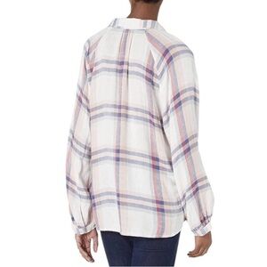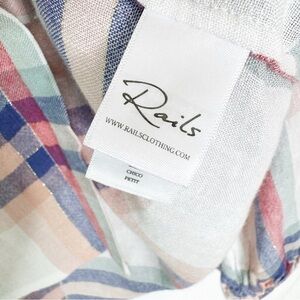 Rails Linen Blend Natalie White Melon Plaid Button Up Shirt