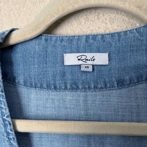 The Zimi blouse from Rails is designed in a medium vintage wash denim effect tencel & linen blend, giving it a lightweight super soft handle.