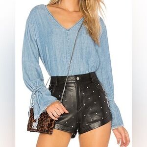 Rails Linen Blend Zimi Vintage Wash Chambray Bell Sleeves V Neck Long Sleeve Top