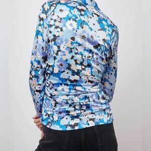 Rails Lisa Blouse Small Zinnia Blue Floral Long Sleeve Stretch Button Up Ruched