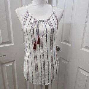 Rails Liv Braided Stripe Cami Tank White Stripes Keyhole Racerback Tassels Boho