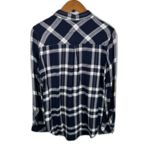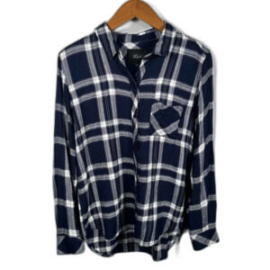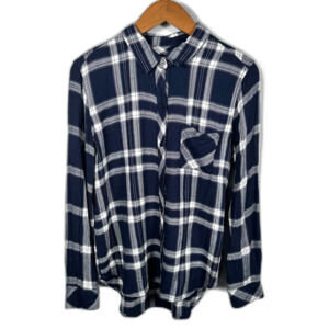 Rails Liza White & Blue Navy Midnight Power Button-Front Long Sleeve Plaid Shirt Size Medium