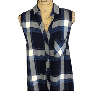 Rails Long Boho Plaid Tunic Top High Low Blue Size Small