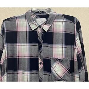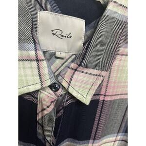 Rails Long Sleeve Button Down Shirt Blue Pink Plaid Size S Patch Pocket Soft