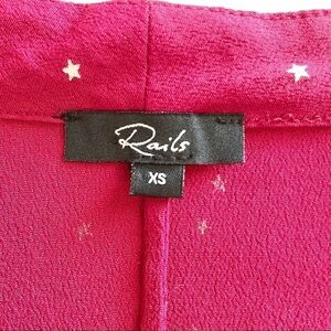 Rails Long Sleeve Button Front Tie Burgundy Star Print Shirt Size XS