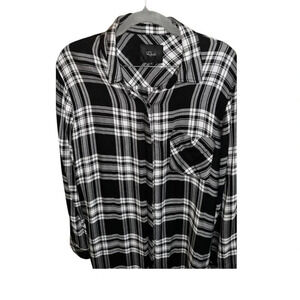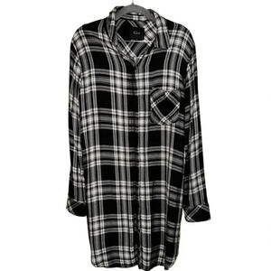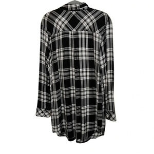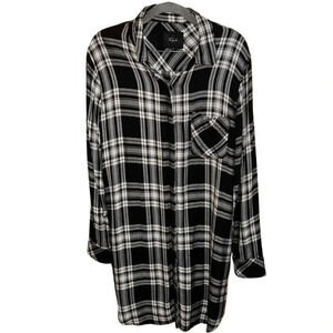 Rails Longline Plaid Black and White Flannel Shirt Size Medium