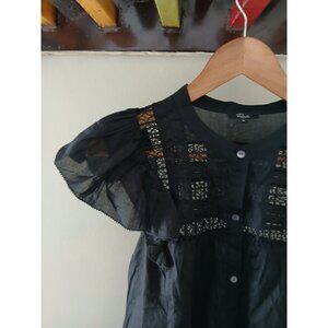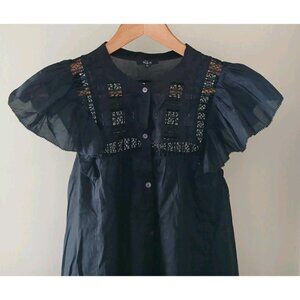 Rails Louella Embroidered Button Front Flutter Sleeve Blouse. Size XL. Black. 100% Cotton. In nice, preowned condition. No flaws noted. Measures approximately 21" pit to pit, 24" shoulder to hem.