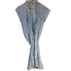 Rails Louisa Bacara Stripe Linen Blend Wrap Dress Sz S