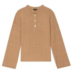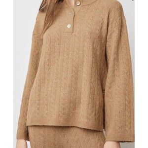 Rails Luma Wool Blend Brown Cable Knit Quarter Button Sweater Dropped Sleeve Med