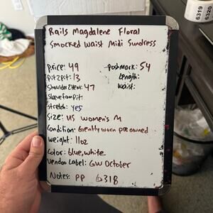 Discover romantic, effortless style with the Rails Magdalene Sundress. This beautiful midi dress features a delicate blue and white floral print, perfect for sunny days. The flattering smocked waist provides a comfortable, figure-defining fit, while the lightweight fabric drapes beautifully. Ideal for everything from weekend brunches to garden parties, this dress pairs perfectly with sandals or wedges for a chic, feminine look. A must-have for any warm-weather wardrobe.