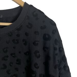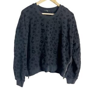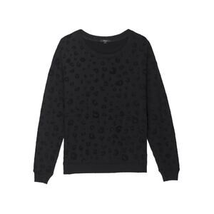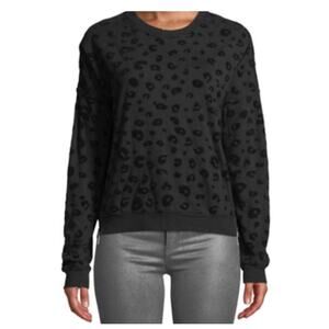 Rails Marlo Black Flocked Leopard Print Long Sleeve Crewneck Pullover Sweatshirt