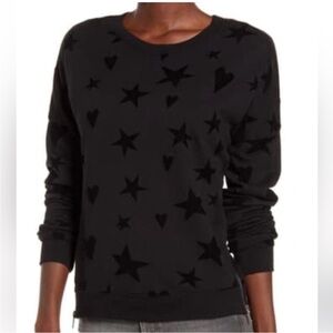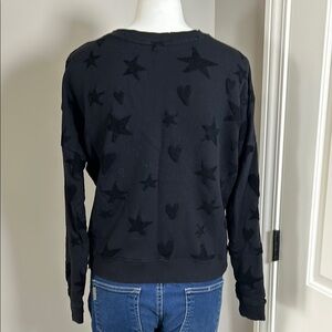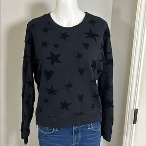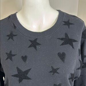Rails Marlo Flocked Hearts Stars Black Crew Neck Sweatshirt Distressed Sz M