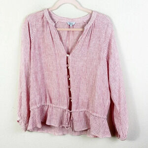 Rails Marti Linen Blend Peplum Top Scarlet Stripe Red White Size Medium